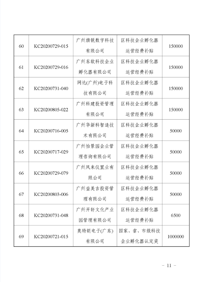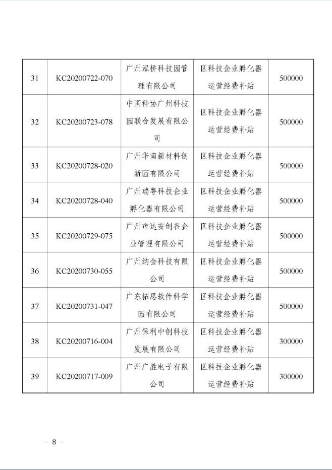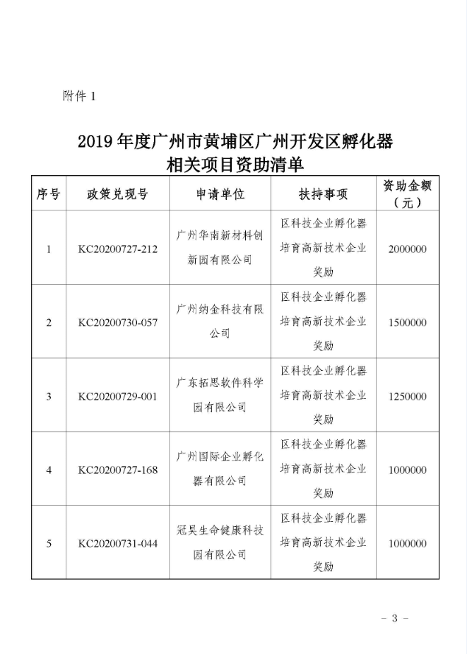 关于拨付2019年度广州市(shì)黄埔區(qū) 广州开发區(qū) 孵化(huà)(huà)器(qì)相关项目資(zī)金的(de)通知