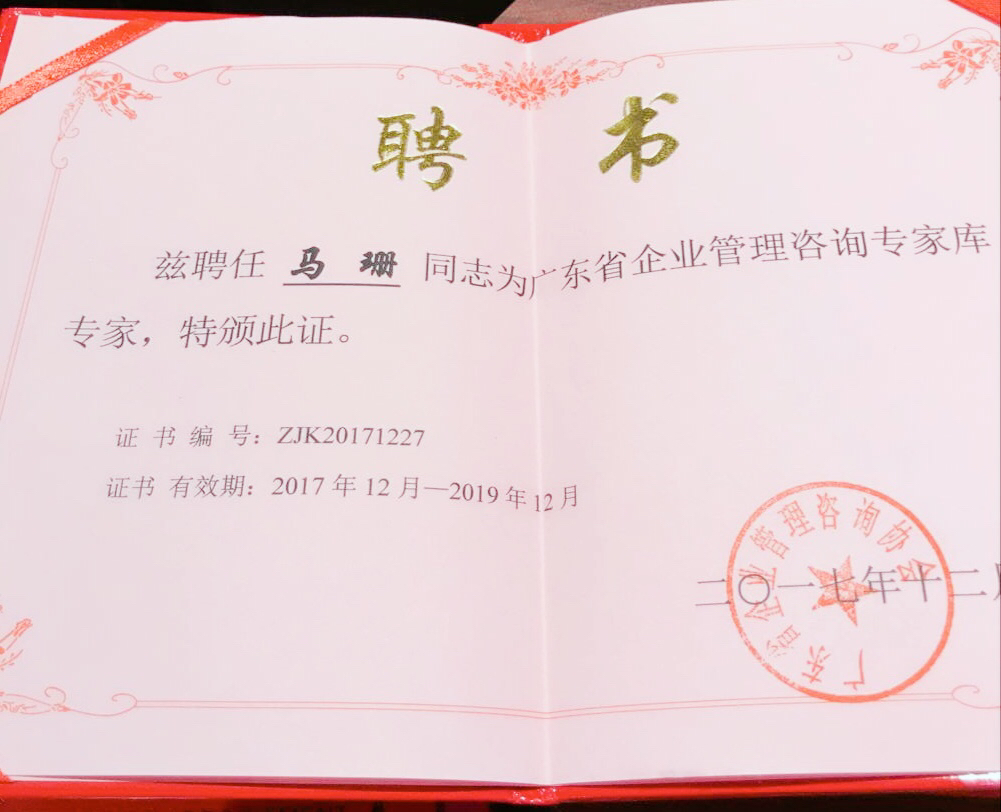 我(wǒ)司(sī)作為(wèi)广东省管理(lǐ)咨询行(xíng)业百佳服(fú)務(wù)质量奖的(de)获得者代表参与了此次活动,同时我(wǒ)司(sī)陈桂芳、向勇、马珊三位老師(shī)顺利入库成為(wèi)广东省企业管理(lǐ)咨询专家库专家。