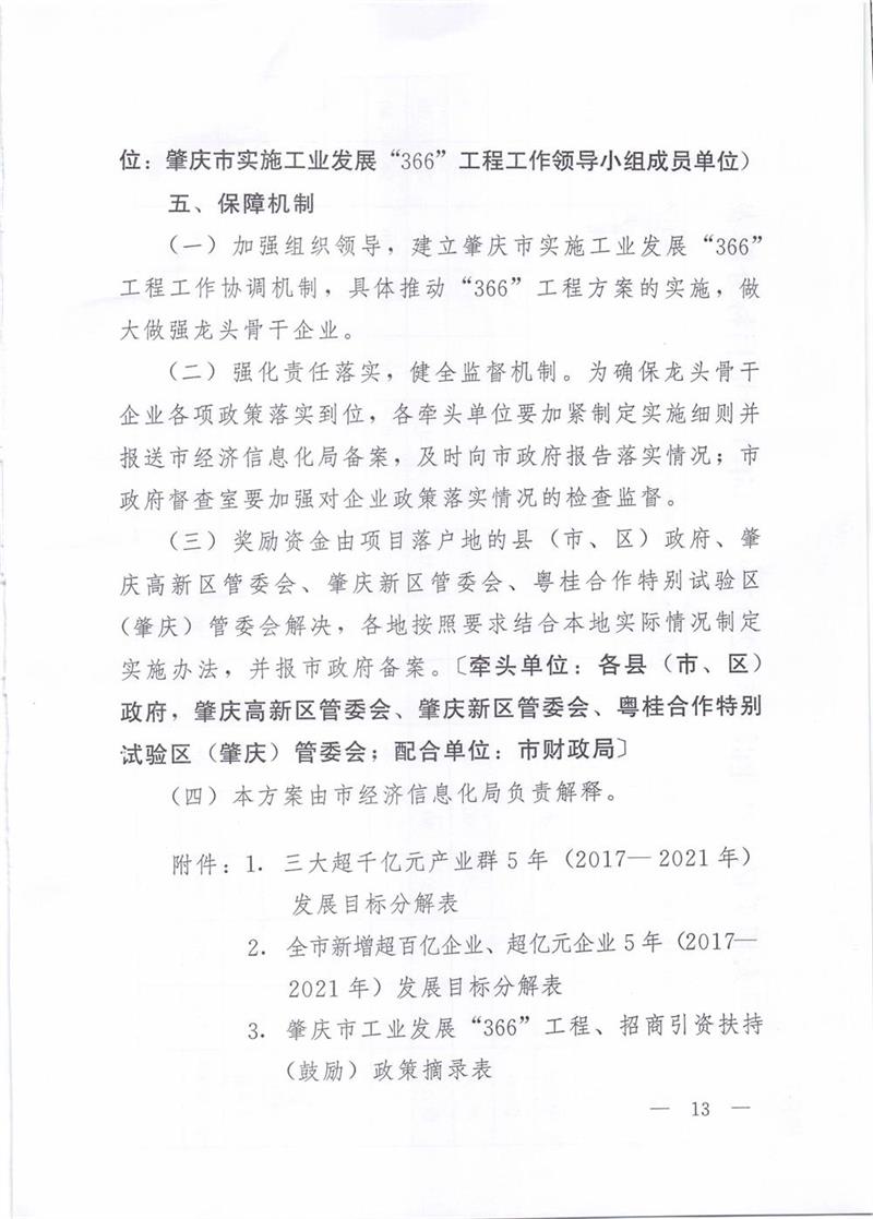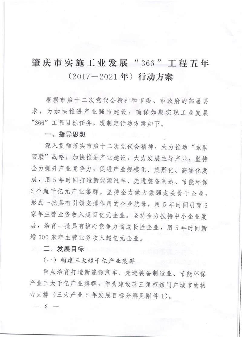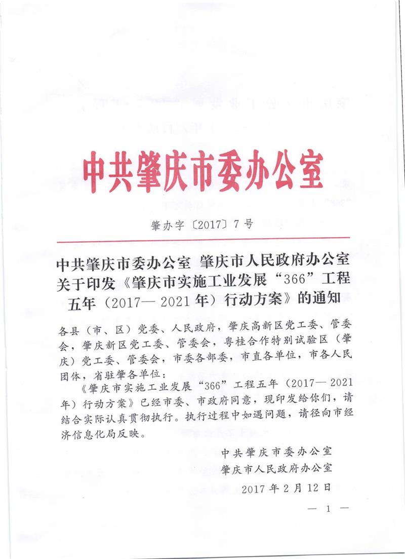 肇办字【2017】7号_中共肇庆市(shì)委办公室_肇庆市(shì)人民政府办公室关于印发《肇庆市(shì)实施工业发展“366”工程五年(2017-2021年)行(xíng)动方案》的(de)通知.