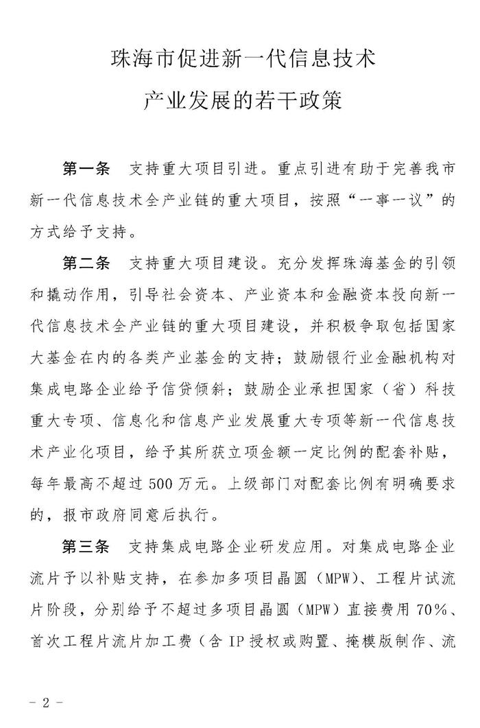 关于印发《珠海市(shì)促进新(xīn)一代信息技术产业发展的(de)若干政策》的(de)通知