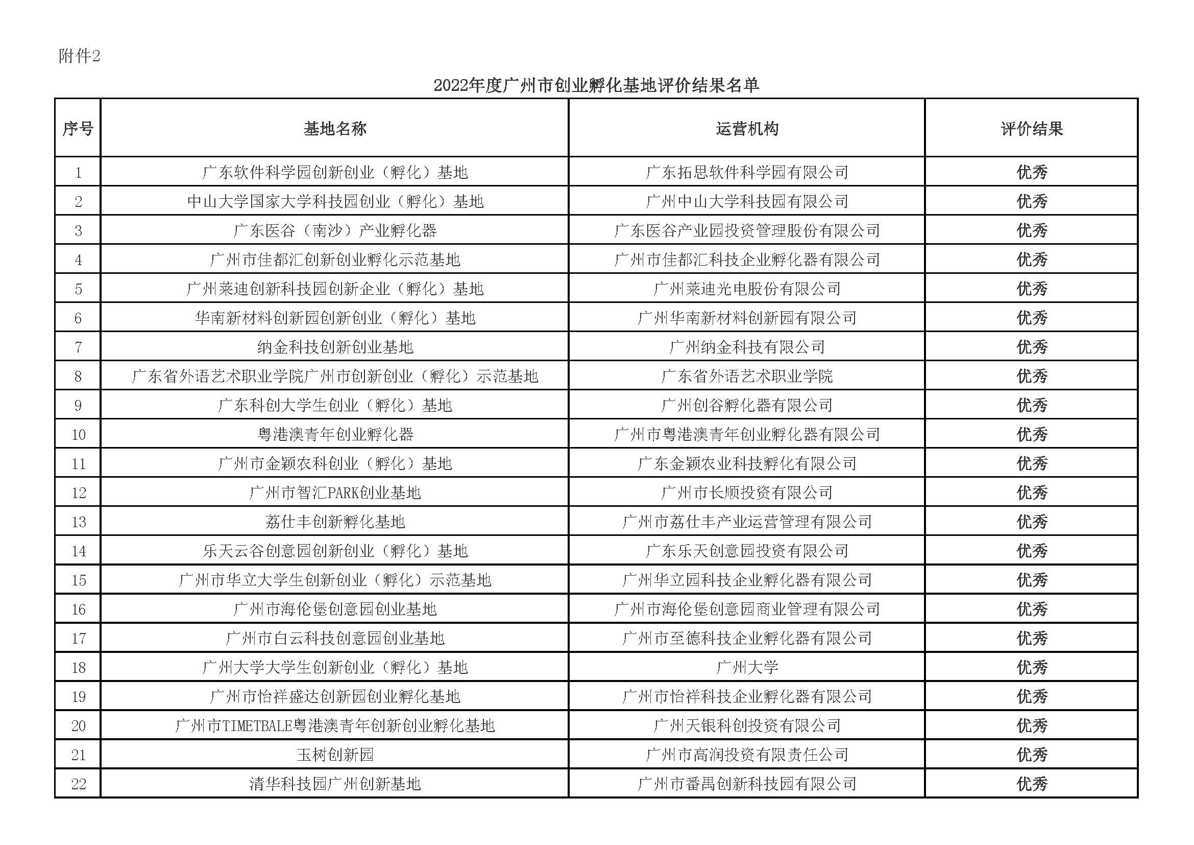 2.2022年度广州市(shì)创业孵化(huà)(huà)基地(dì)评价结果名单