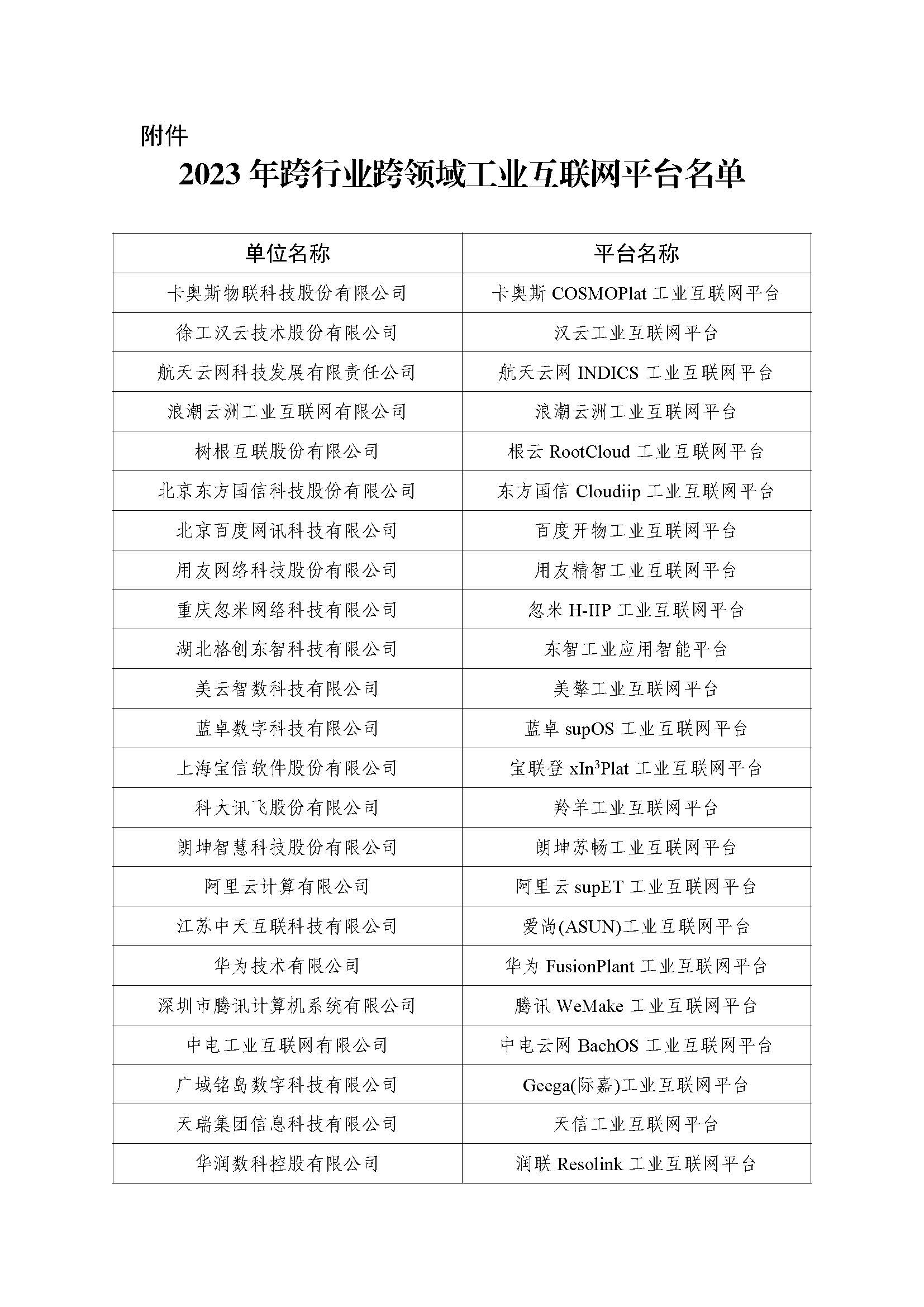 附件(jiàn):2023年跨行(xíng)业跨领域工业互联网平台名单