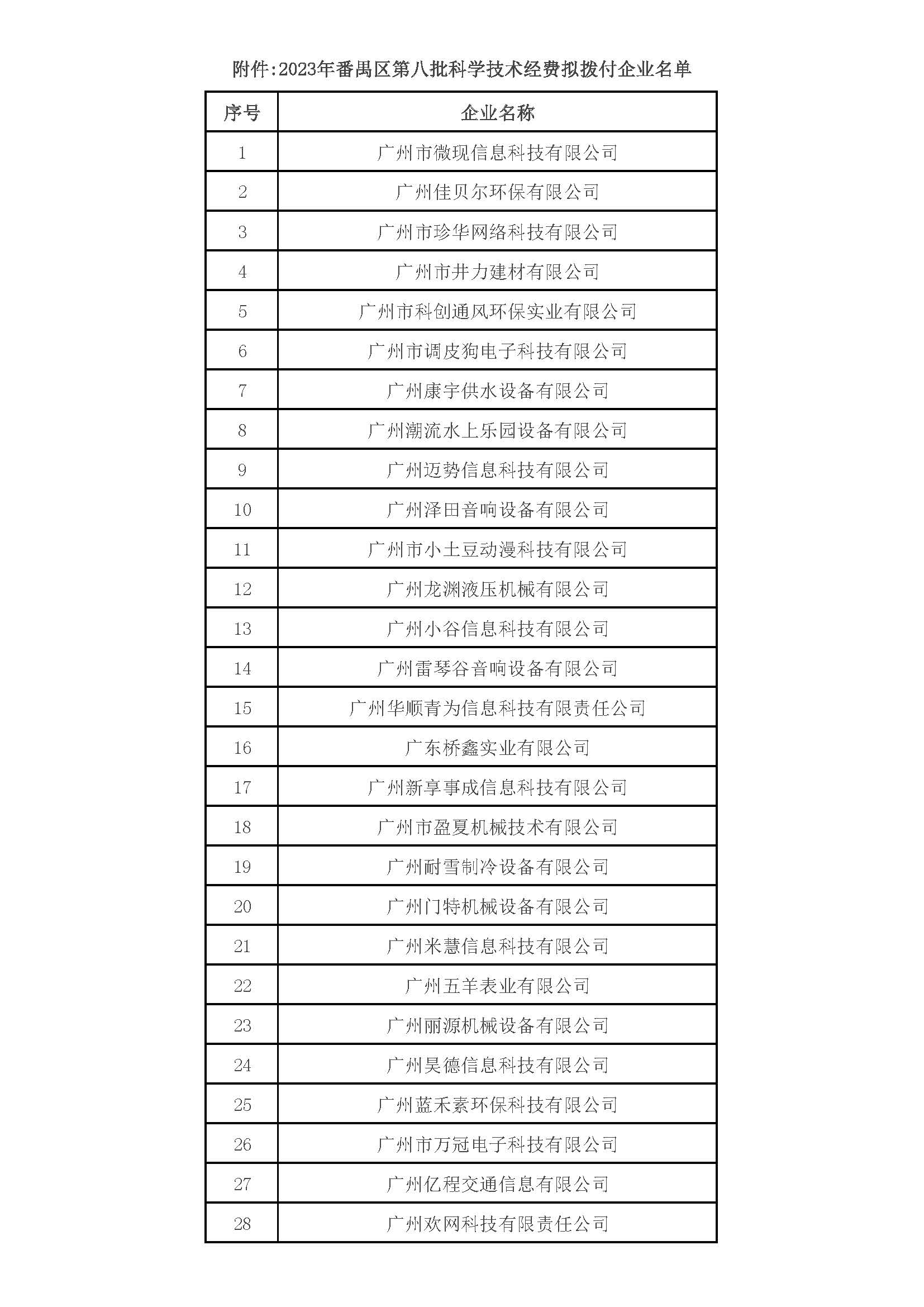 附件(jiàn):2023年番禺區(qū)第八批科(kē)學(xué)技术经费拟拨付企业名单