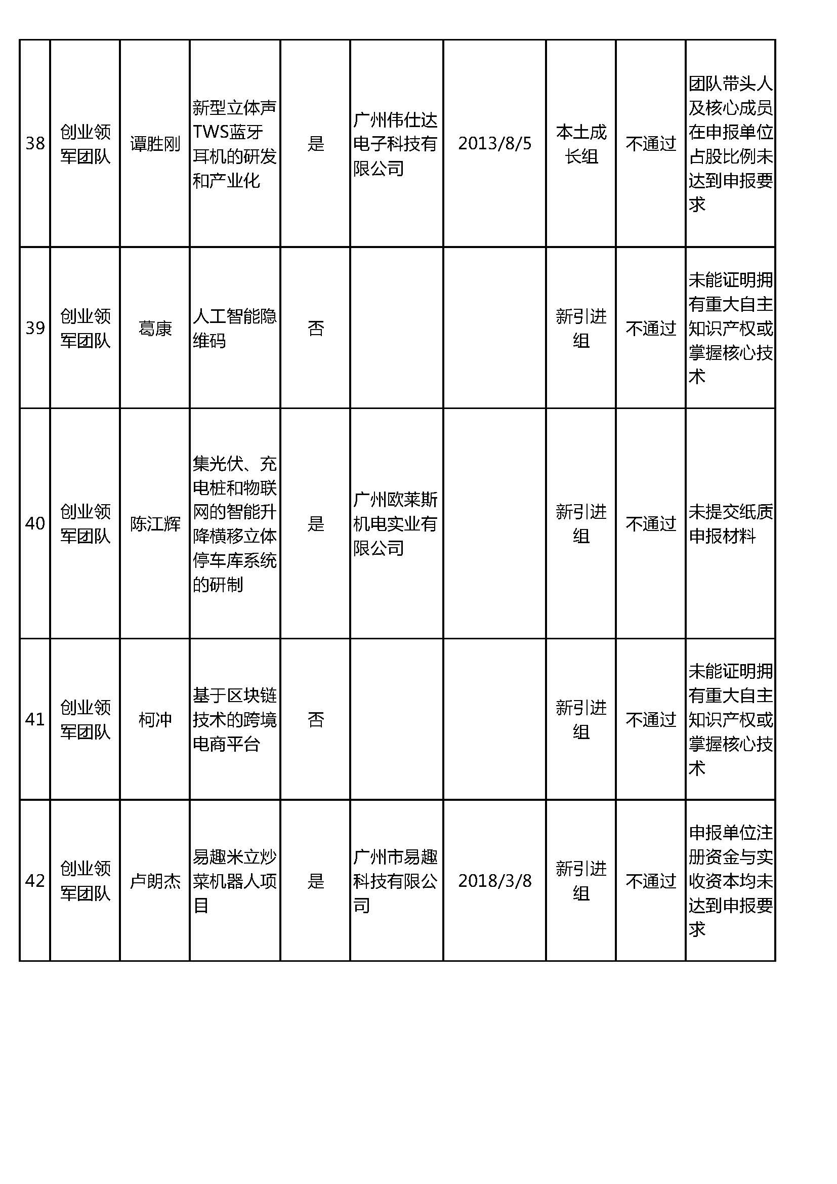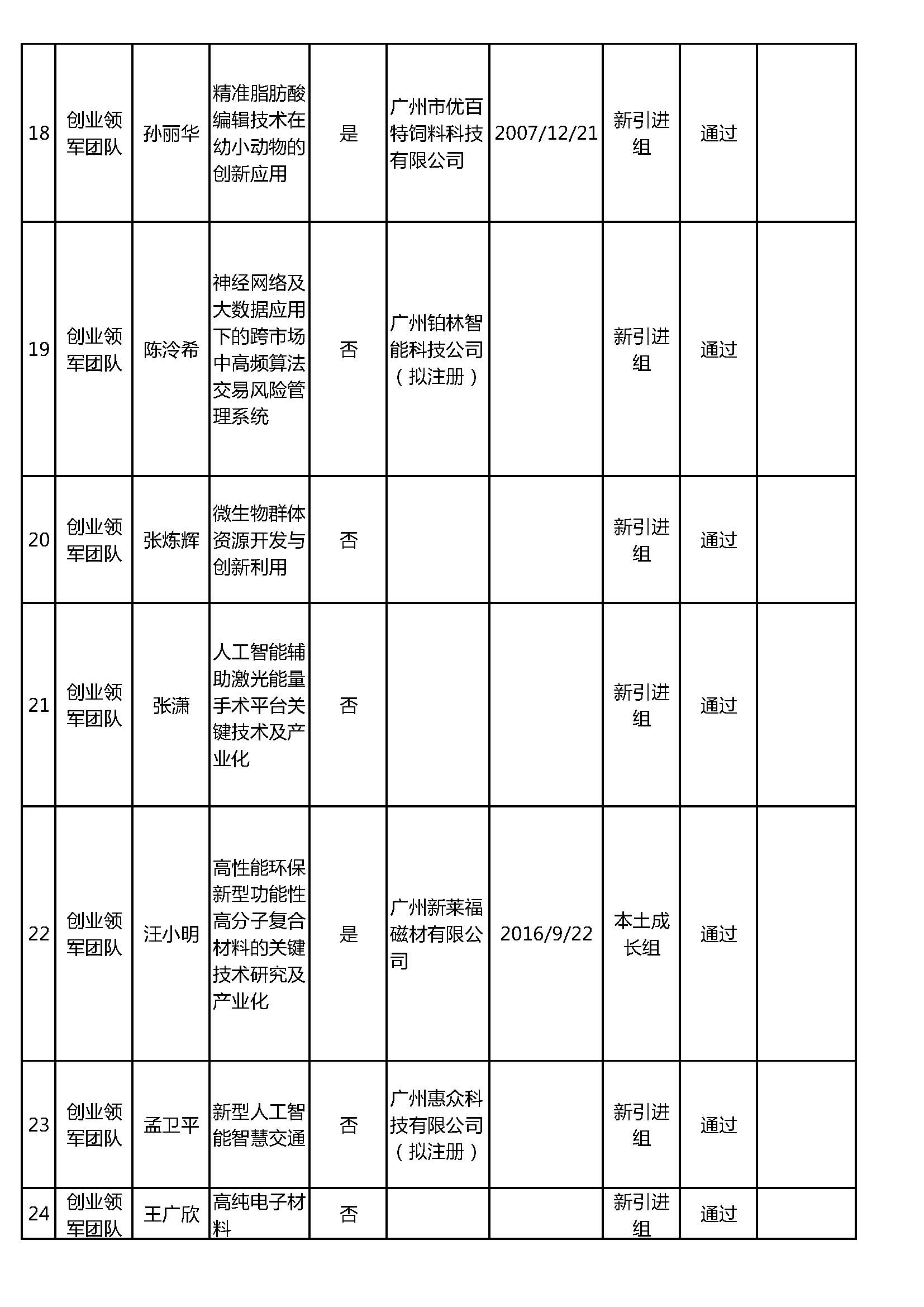 附件(jiàn):2018-2019年度增城區(qū)创新(xīn)创业领军团队(人才)项目形式审查结果