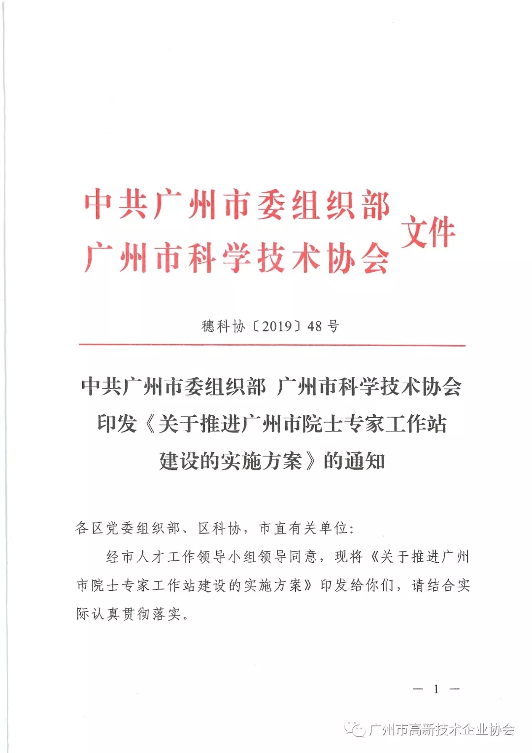 市(shì)委组织部市(shì)科(kē)协印发《关于推进广州市(shì)院士专家工作站建设的(de)实施方案》的(de)通知