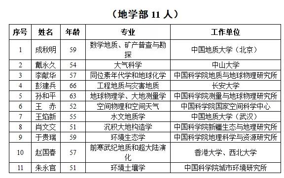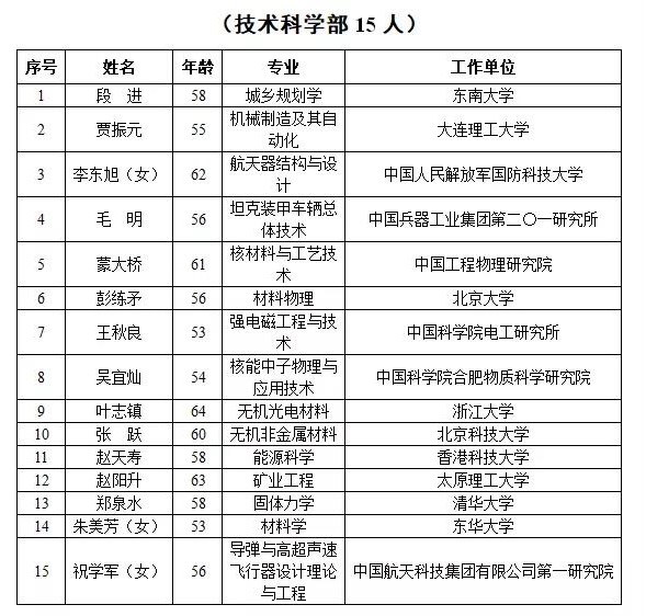 2019年中国科(kē)學(xué)院院士增选当选院士名单公布