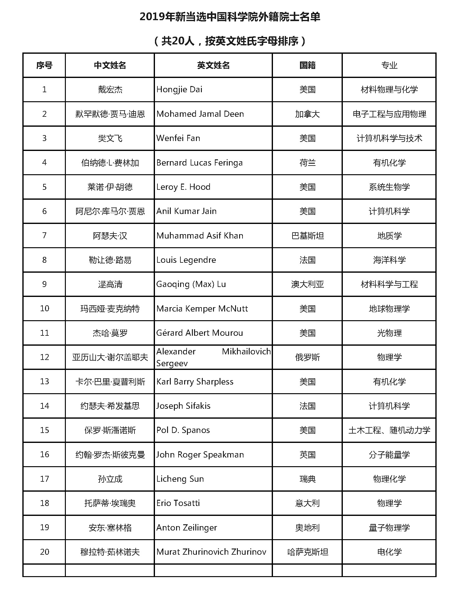 关于公布2019年中国科(kē)學(xué)院院士增选当选院士名单的(de)公告