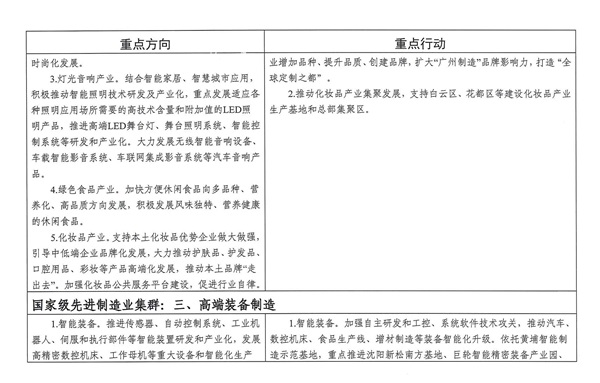 广州市(shì)先进制造业集群重点发展方向及行(xíng)动