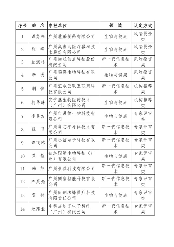 附件(jiàn):2019年广州市(shì)黄埔區(qū)广州开发區(qū)创新(xīn)创业领军人才拟入选名单
