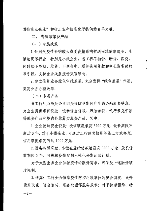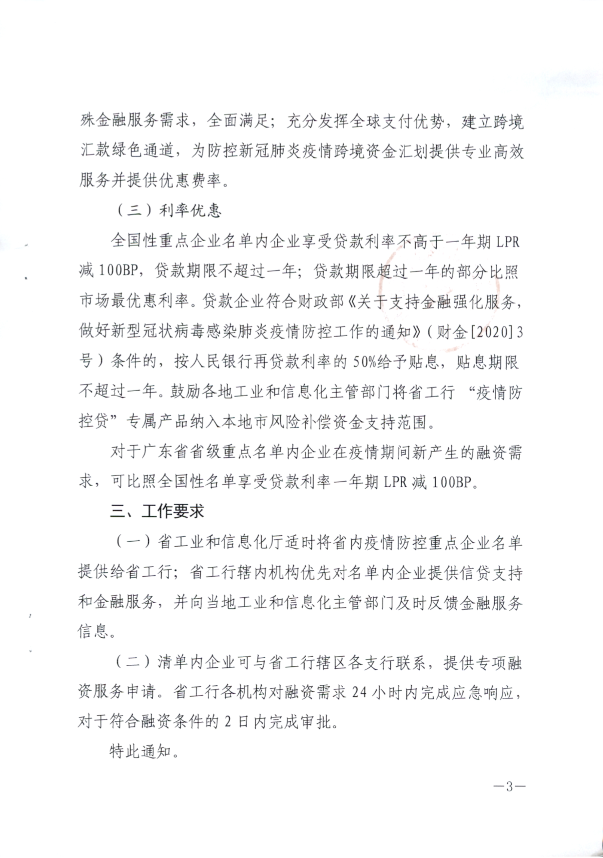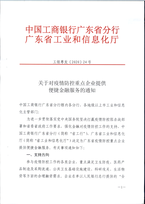 中国工商銀(yín)行(xíng)广东省分行(xíng) 广东省工业和信息化(huà)(huà)厅关于对疫情防控重点企业专属融資(zī)服(fú)務(wù)的(de)通知